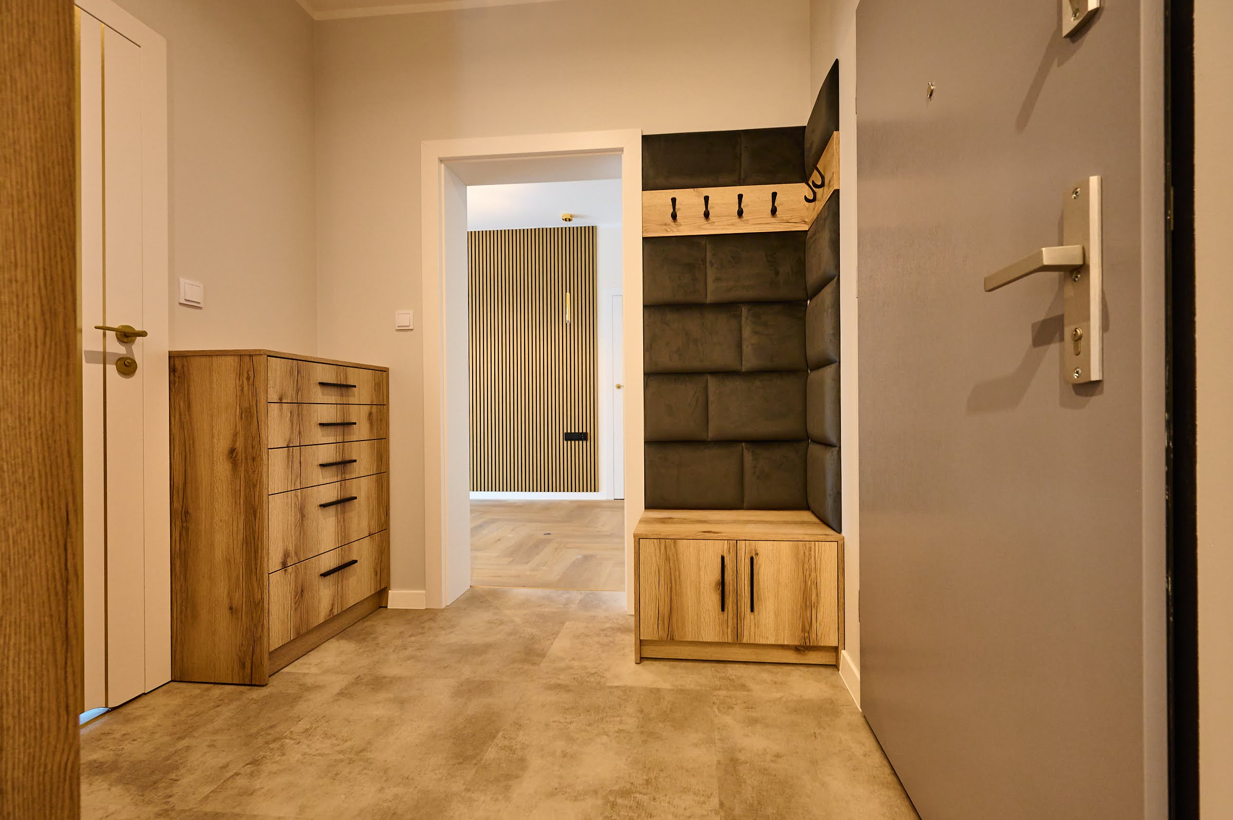Mieszkania są funkcjonalne, standardowa wysokość mieszkań od podłogi do sufitu wynosi 2,63 m. W każdym mieszkaniu ściany nośne są otynkowane tynkiem gipsowym, a ścianki działowe wyrównane są białą gładzią szpachlową. W lokalach montujemy okna PCV o bardzo dobrych parametrach izolacyjności cieplnej i akustycznej. Profile z tworzywa sztucznego wysokiej jakości są przyjazne dla zdrowia i środowiska wykonane w ekotechnologii bezołowiowej – Greenline. Od 2019 roku w każdym pomieszczeniu będzie zamontowany nawiewnik w oknie. Wykończenie okien stanowią parapety z konglomeratu Botticino o grubości 3 cm. W naszych mieszkaniach znajdziesz: