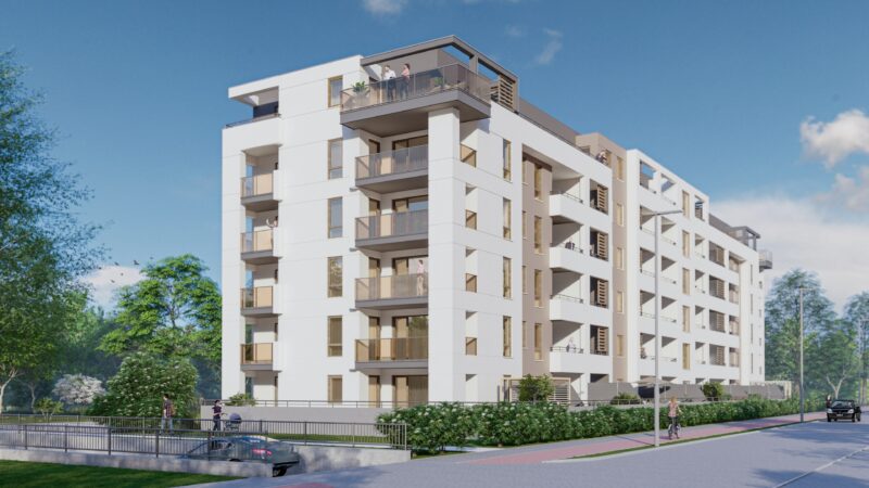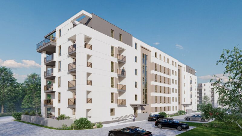 W budynku znajdą się 54 mieszkania 2 i 3 – pokojowe o metrażu od 39,25 do 69,53 m2. Prace już ruszyły a ich zakończenie planowane jest na wrzesień 2025.