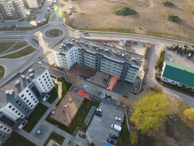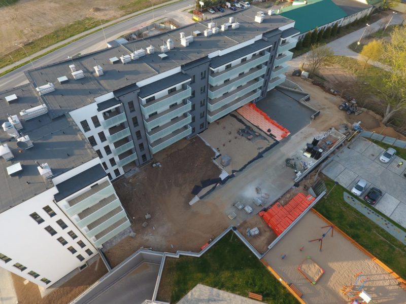 Prace budowlane budynku F przebiegały zgodnie z terminem - wkrótce oddanie budynku do użytku i wprowadzanie się nowych mieszkańców do Nowego Miasta w Ełku. Pozostały jeszcze prace związane z uporządkowaniem terenów zielonych wokół budynku.