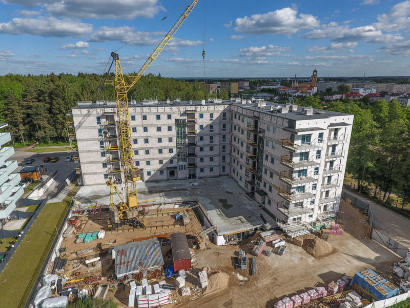Kontynuowane są prace budowlane Al. Niepodległości 33 – został wylany strop nad podziemną halą garażową. W sprzedaży pozostało już tylko 1 mieszkanie 48,87 m2 w cenie 207 698 zł – zamieszkaj w Mońkach.