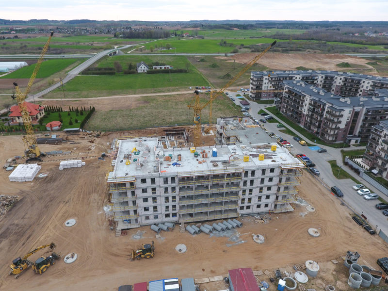 Na budowie przy ul. Nila 8 pierwszą łopatę mamy już za sobą – prowadzone są roboty ziemne oraz wylewane fundamenty. W budynku znajdą się 24 mieszkania, w tym 4 mieszkania z dachem zielonym (rozpoczeliśmy przedsprzedaż mieszkań).