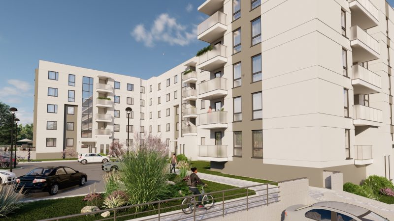 Nowy budynek mieszkalny wielorodzinny przy ul. Fieldorfa Nila 2 powstaje w dynamicznie rozwijającej się części Ełku. Obiekt liczy 6 kondygnacji: kondygnację podziemną z komórkami lokatorskimi i halą garażową oraz parter i 4 piętra z mieszkaniami. Budynek wyposażony jest w windę, co zapewnia wygodę codziennego użytkowania niezależnie od wybranego piętra.