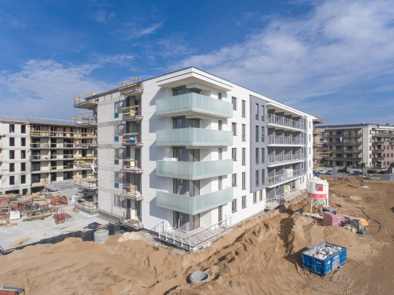 W budynku na Fieldorfa Nila 6 widać efekty pracy firm elewacyjnych. Jesteśmy w trakcie montażu balustrad na balkonach. Wewnątrz budynku trwają pracę elektryczne i hydrauliczne. Swoją pracę zakończyli tynkarze.