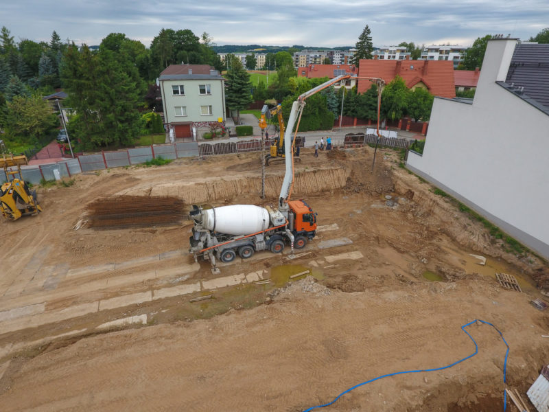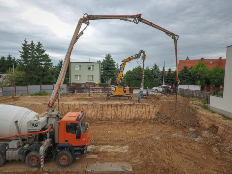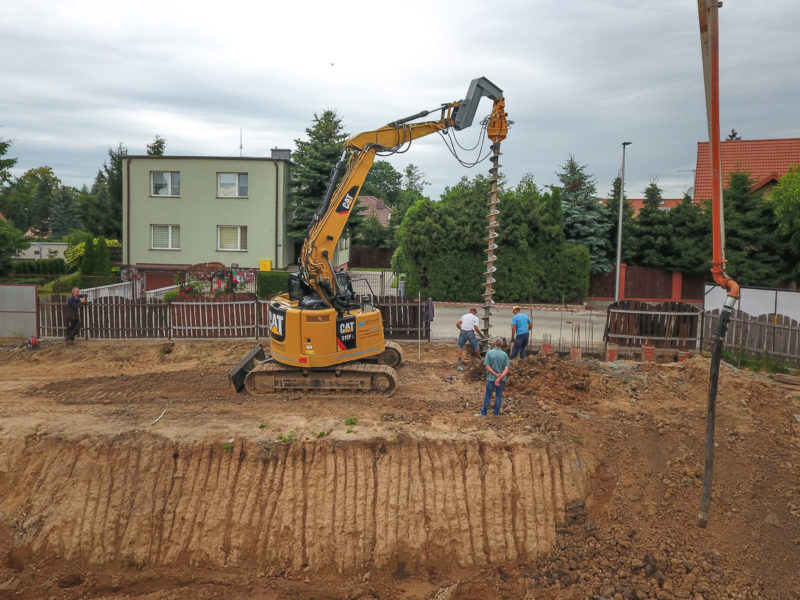 Pierwszą wkopaną łopatę... a może wwiercenie świdra mamy za sobą! W nowoczesnym budownictwie, kiedy nie ma możliwości zrobienia zwykłych fundamentów, świetnie sprawdza się wykonanie głębokich fundamentów. Po wwierceniu się świdrem ślimakowym na odpowiednią głębokość, w otworach wykonane zostaną betonowe, zbrojone pale (CFA).