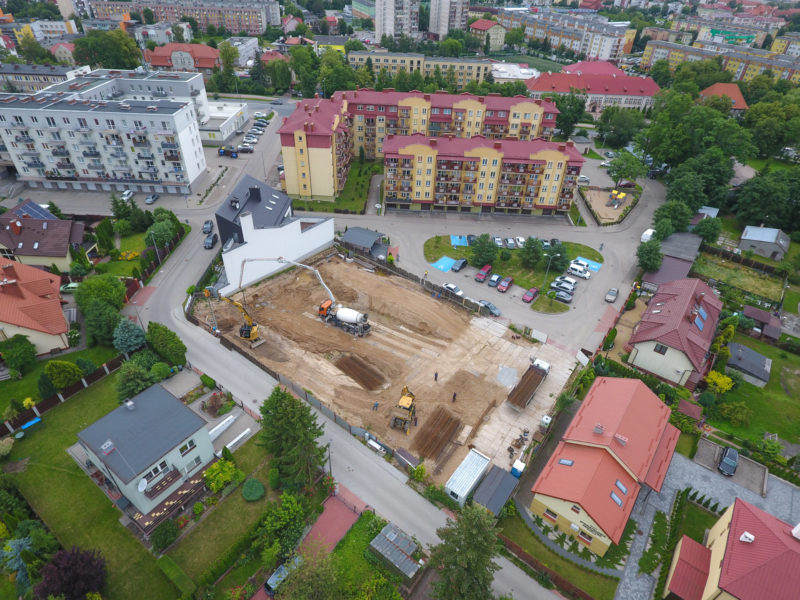 Budowa apartamentowca na Baczyńskiego w Ełku - proces palowania 6 lipca 2020 r.