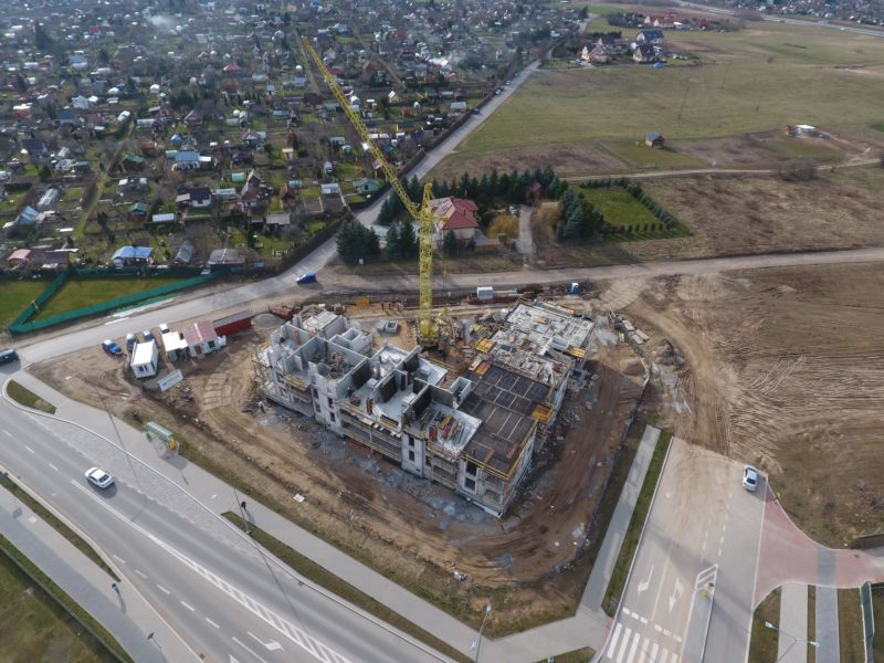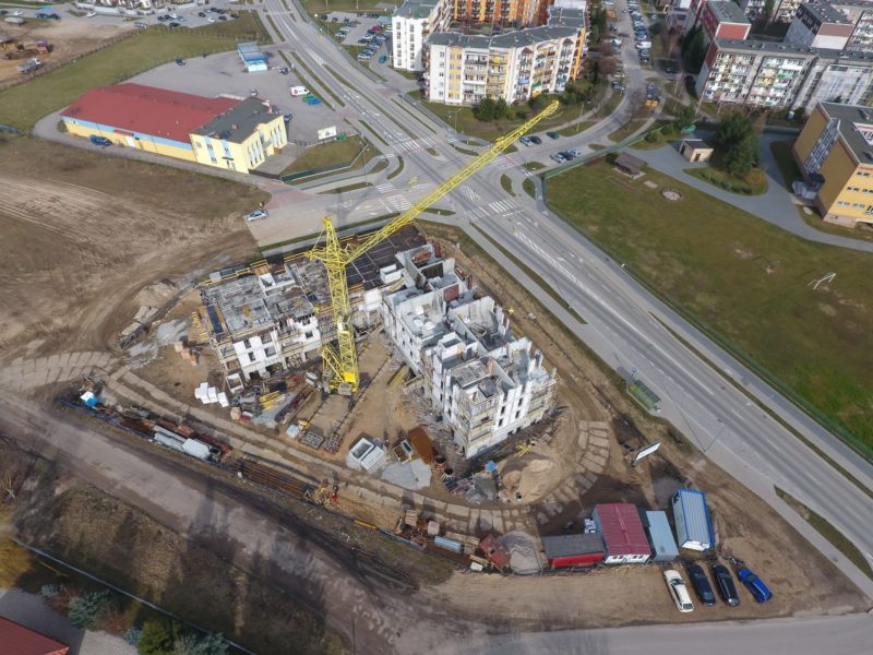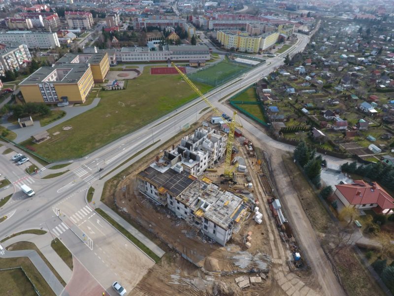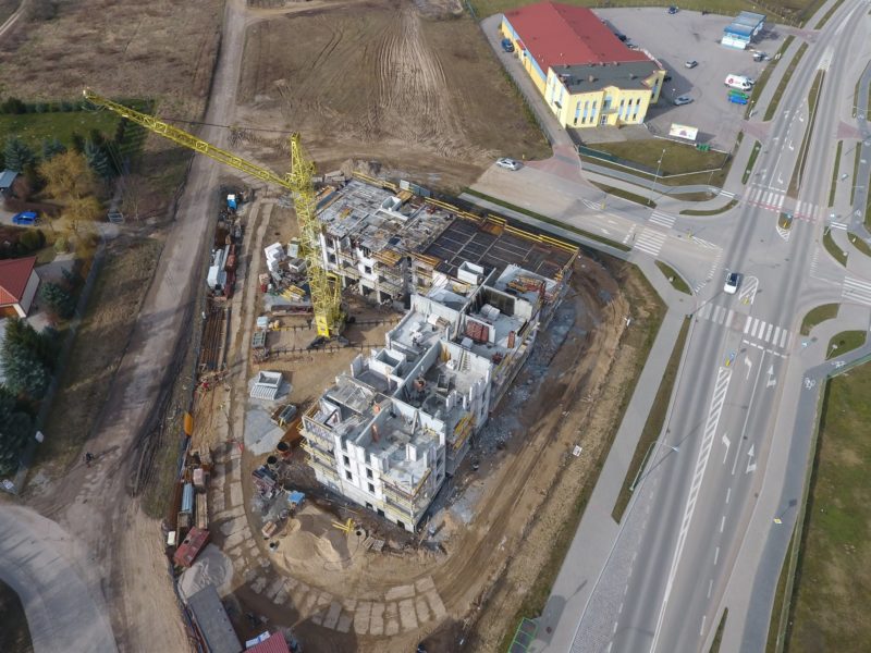 Na budowie w Ełku, naszej inwestycji widać bardzo wyraźne efekty. Kondygnacja I została zamknięta stropem i trwają prace budowlane nad II kondygnacją.